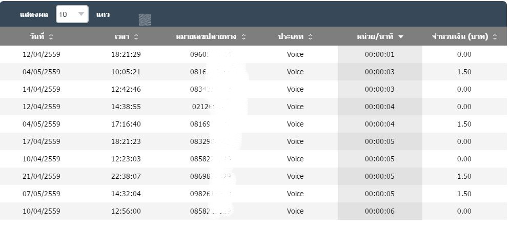 สืบเนื่องมาจาก รู้สึกว่าค่าโทรศัพท์ พุ่งขึ้นแบบแปลก ๆ ทั้ง ๆ ที่ คิดว่าใช้งานน้อยลง เลยลอง โหลด History การใช้มาดู ก็มาเห็นว่า อ่าวเห้ย โทรออก 1 วินาที ปลายสายยังไม่ได้รู้ตัวเลยมั้ง ค่าโทรก็ขึ้นแล้ว เลยอยากทราบว่า ถ้าปลายสายยังไม่ได้รับนี่ ก็คิดเงินแล้วหรือครับ หรือมีในสัญญาแต่ผมไม่ได้อ่านครับ จากที่เห็นในรูป ที่เป็น 0 บาท เพราะค่าโทรยังอยู่ในโปร นะครับ อันนี้ผมเลือกแบบเป็นระยะเวลาโทรมาให้ดู ทำให้วัน มันข้ามไปมา