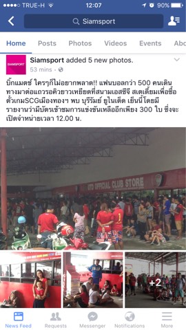 ใครจะไปต่อคิวหน้าสนาม SCG Stadium เตรียมใส่เสื้อบุรีรัมย์ไปนั่งรอตั้งแต่ตีห้าหกโมงพร้อมน้ำและอาหาร 3 มื้อเลยนะครับ เลยเที่ยงไปแล้วไม่ต้องรอ หา True4U ดูง่ายกว่า ดีมานด์สูงจริงๆ เกมนี้