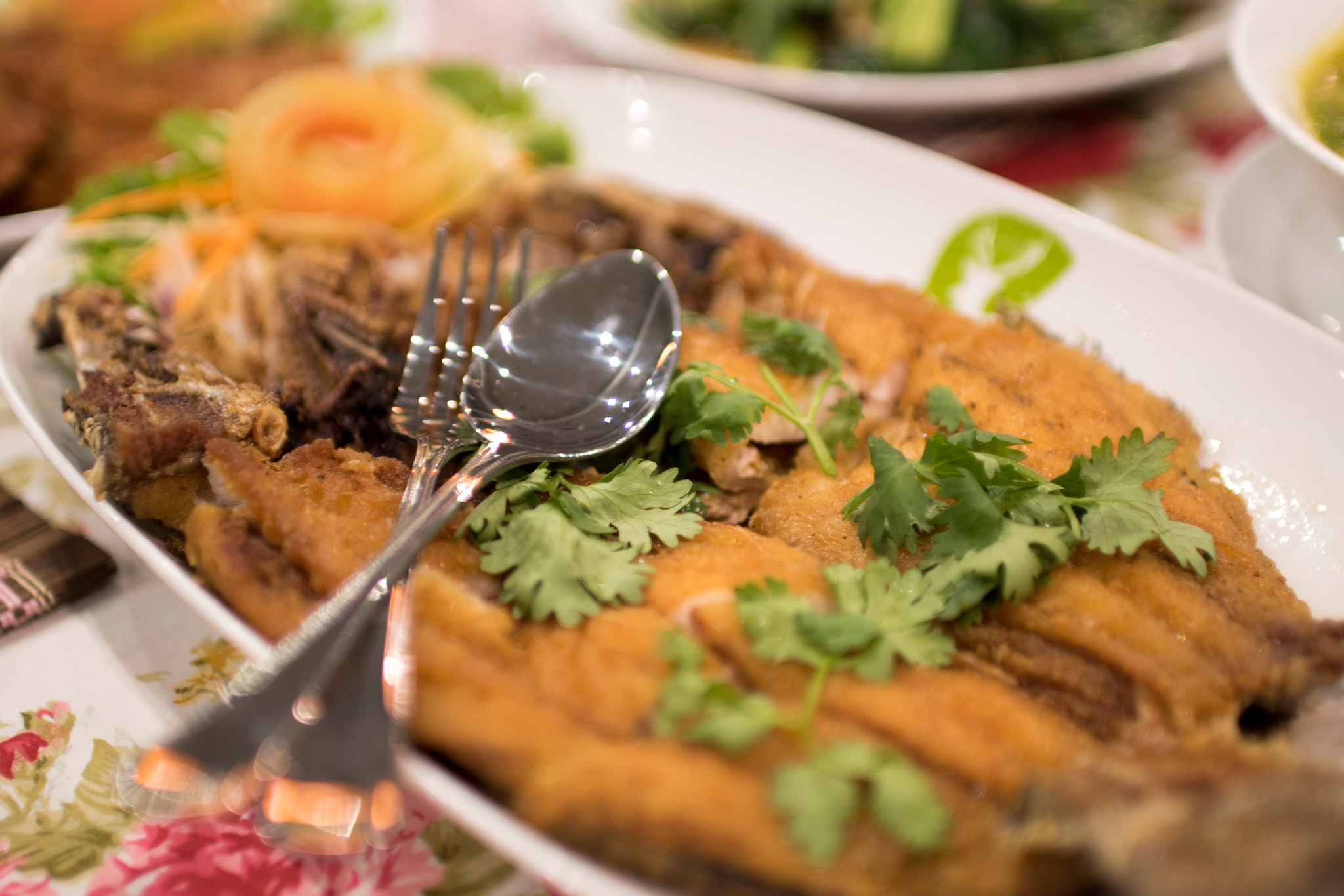 ปลากระพงทอดน้ำปลา เมนูเด็ดของที่นี่เลยครับ
