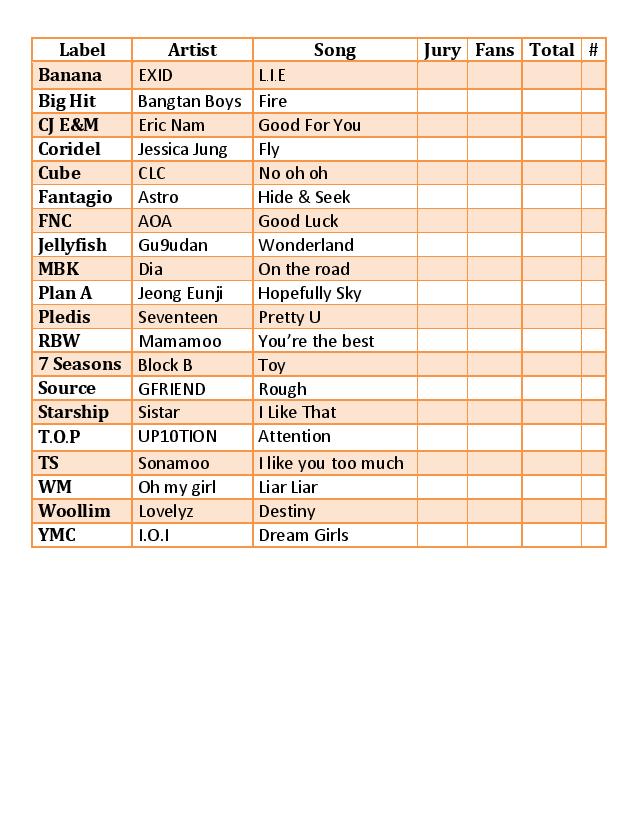 [Kpopvision Song Contest 2016] ประกาศผลรอบรองชนะเลิศกลุ่ม 2 + ผู้เข้าแข่งขันในกลุ่ม 3 Group of death