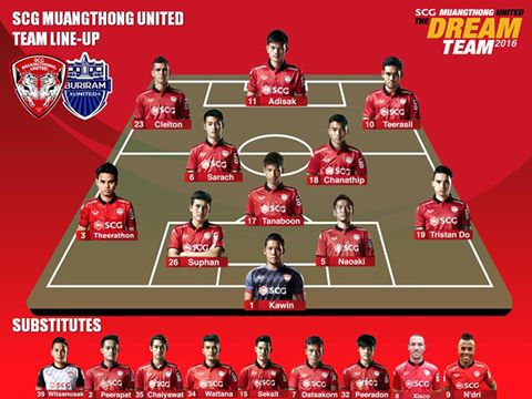 รายชื่อ 11 ผู้เล่นตัวจริง ซุปเปอร์ บิ๊กเเมทต์ เมือทอง-บุรีรัมย์วันนี้