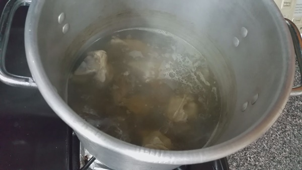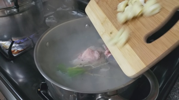 เอาน้ำใส่หม้อใหญ่หน่อยก็ได้ค่ะ แล้วต้มน้ำให้เดือดนะคะ แล้วก็เอากระดูกหมูที่เรามีล้างให้สะอาด ใส่ีหม้อ ตามด้วยรากผักชี กระเทียมและพริกไทยค่ะ เกลือ ถ้ามีน้ำตาลกรวดใส่ไปนิดหน่อยค่ะ ตาไม่มี และกระเทียมดองค่ะ พร้อมน้ำกระเทียมดองนะคะ แล้วต้มต่อไปคอยช้อนฟองออกน้ำซุปเราจะได้ใสค่ะ ตาต้มไป ประมาณ 1ชั่วโมงครึ่งค่ะ