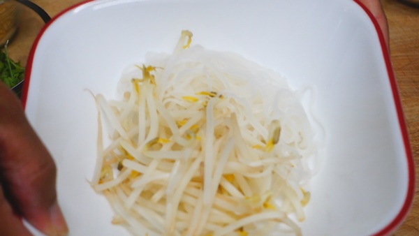 ลวกเส้น กับถั่วงอกเตรียมใส่ชามค่ะ