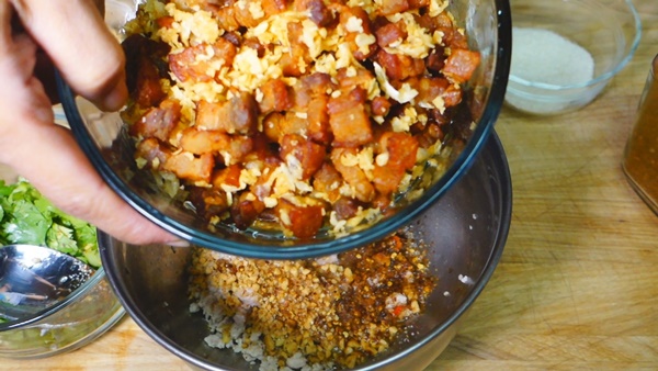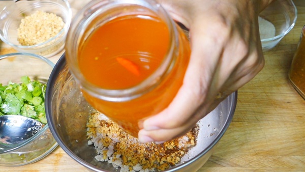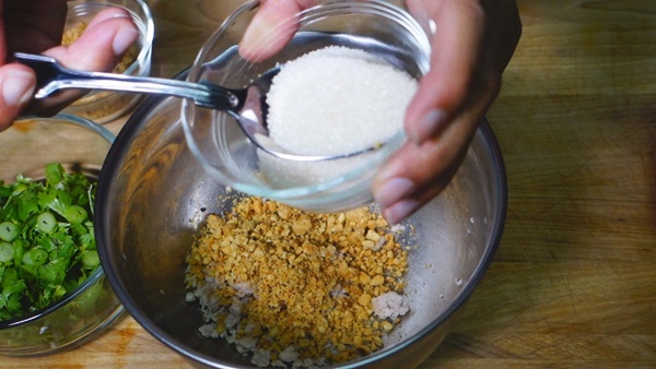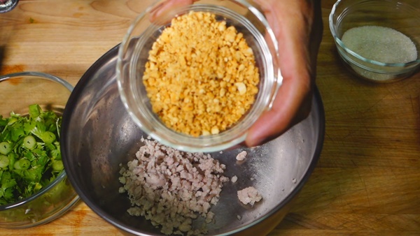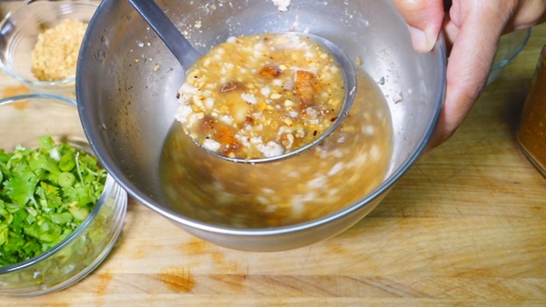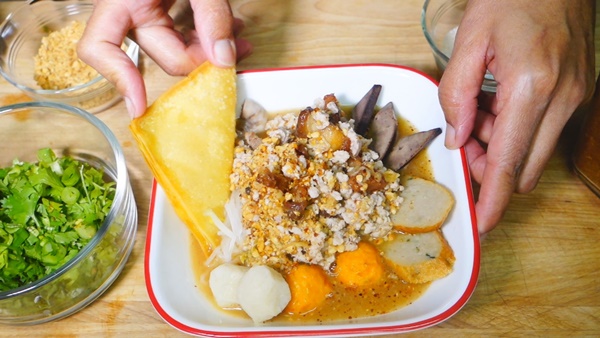 ใส่เกี๊ยวทอดกรอบลงไปในชาม