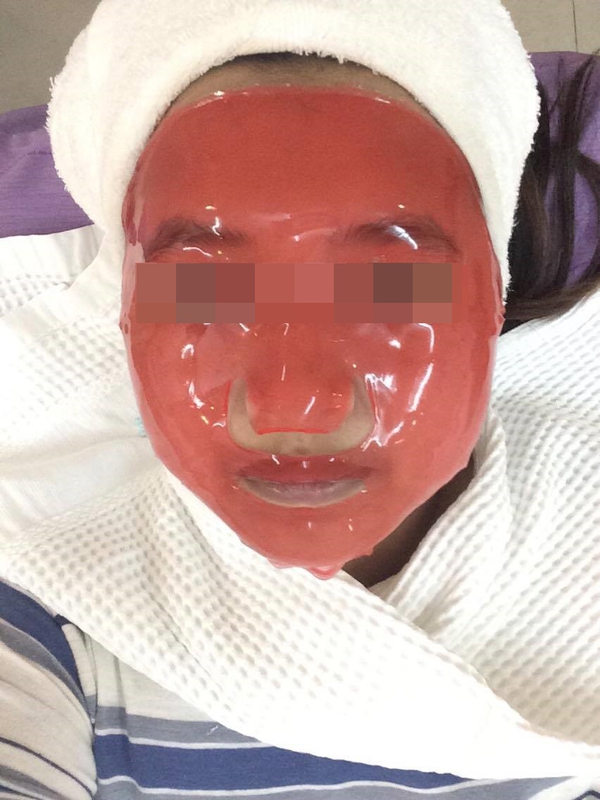 หลังจากทำช้อนทอง (Derma Shock) เสร็จแล้วนั้น ก็ปิดท้ายด้วยมาส์กหน้าทองคำค่ะ มันจะเป็นแผ่นเจลมาส์กหน้าปกติเลยค่ะ ตัวน้ำยาที่เจลเยอะ แผ่นเจลติดหน้า ไม่ต้องเกร็งกลัวหล่นหน้าเลยตอนถ่ายรูป 5555555 ปล. ไม่ต้องตกใจหน้าเรานะ ขอเบลอตาตัวเองนิดนึง มีความอาย555555
