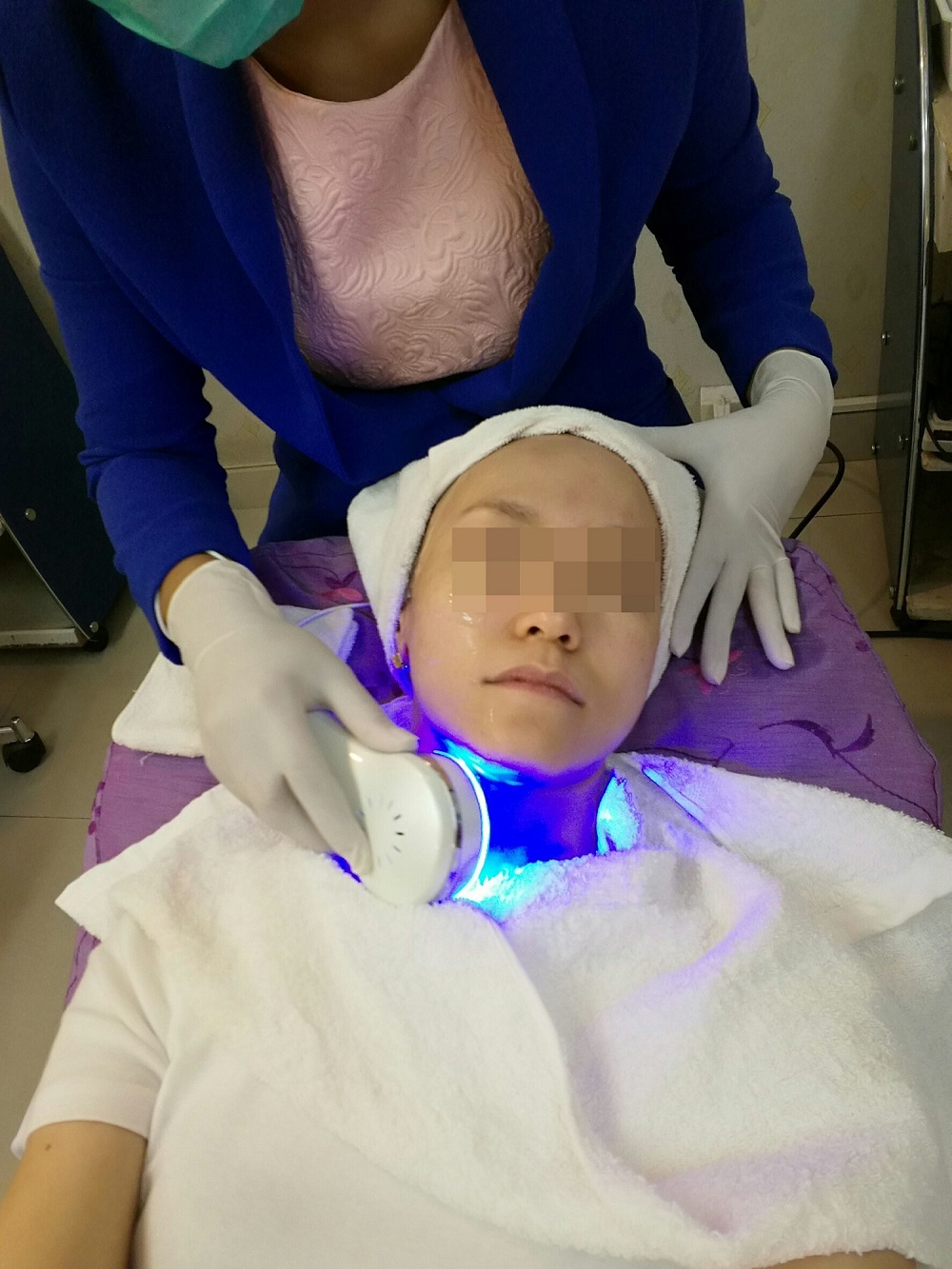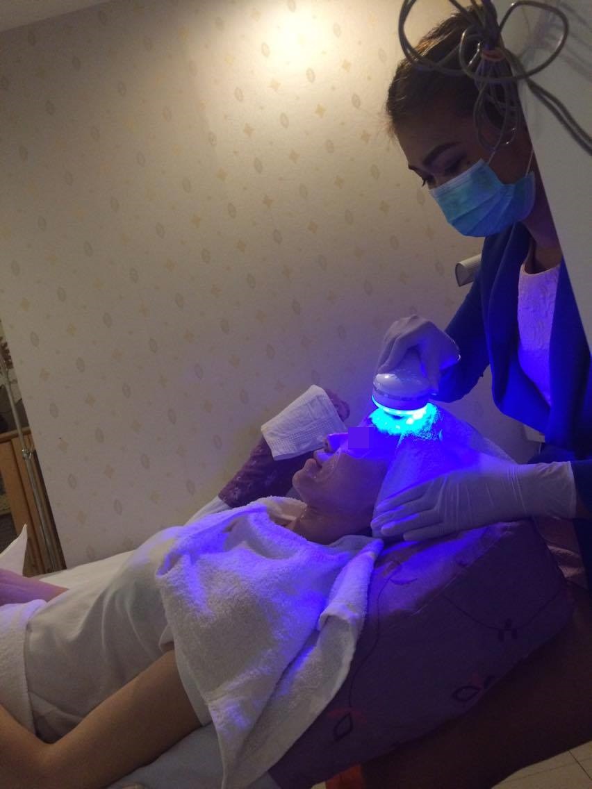 ตัวแรกที่เราทำคือ ช้อนทอง (Derma Shock) สนนราคาอยู่ที่ 800 บาท/ครั้ง แต่เราซื้อเป็นคอร์ส ราคา 3,900 บาท/6ครั้ง (หลังจากทำแล้วรู้สึกว่าโอเค) หารออกมาแล้วถูกกว่า มันจะเหลือ 650 บาท/ครั้ง เราไม่ได้ถ่ายรูปตอนทำช้อนทองมาง่ะ ต้องขออภัยด้วยนะคะ มันจะเป็นการทำหน้าโดยใช้กระแสไฟฟ้า ซึ่งกระแสไฟฟ้ามันจะผลักน้ำยาเข้าเซลล์ผิว ส่งวิตามินเข้าถึงผิวหนังชั้นลึก ซึ่งช้อนทองคำเนี่ย เราเคยทำที่อื่นมาแล้วนะคะ แต่ของที่อื่นตอนนั้นทำรู้สึกว่ามันเจ็บๆ จี๊ดๆอะ เลยทำไปแค่ 2 ครั้ง แต่ของที่นี่มันไม่เจ็บเลย อันนี้ประหลาดใจจริง เพราะตอนตัดสินใจว่าจะทำอันนี้คือก็เสี่ยงเอาเลยนะว่าจะเจ็บเหมือนที่เคยทำมาป่าว มันแค่รู้สึกว่าหน้าสั่นๆ มีคลื่นของไฟฟ้าเท่านั้น ดีนะที่ไม่เจ็บ จี๊ดๆ ไม่งั้นอดได้เงินค่าคอร์สค่ะ 555555