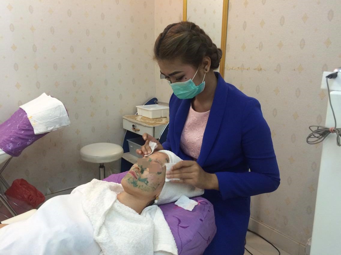 ต่อกันที่กดสิวค่ะ ตอนแรกที่จะทำ เราก็ถามพี่เรานะว่าจะทำทำไม หน้าก็ไม่เห็นจะมีสิว นางบอกว่ามันมีเหวยแกรรรร มันต้องกด ละมันจะออกมา (หื้มมมมม มีด้วยเหรอ?555555 ปกติหน้าเราไม่ค่อยมีสิว จะมีตอนมีเมนส์ เลยไม่ค่อยสันทัดเรื่องนี้เท่าไหร่)