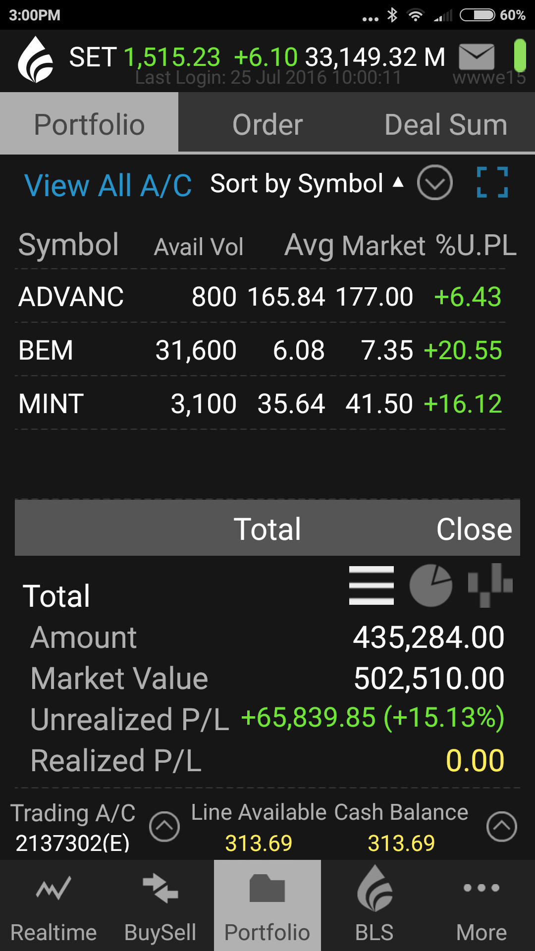 ลงทุนไป 5 แสนบาท ตอนเดือน พ.ค. 58 (Set 1520 จุด)