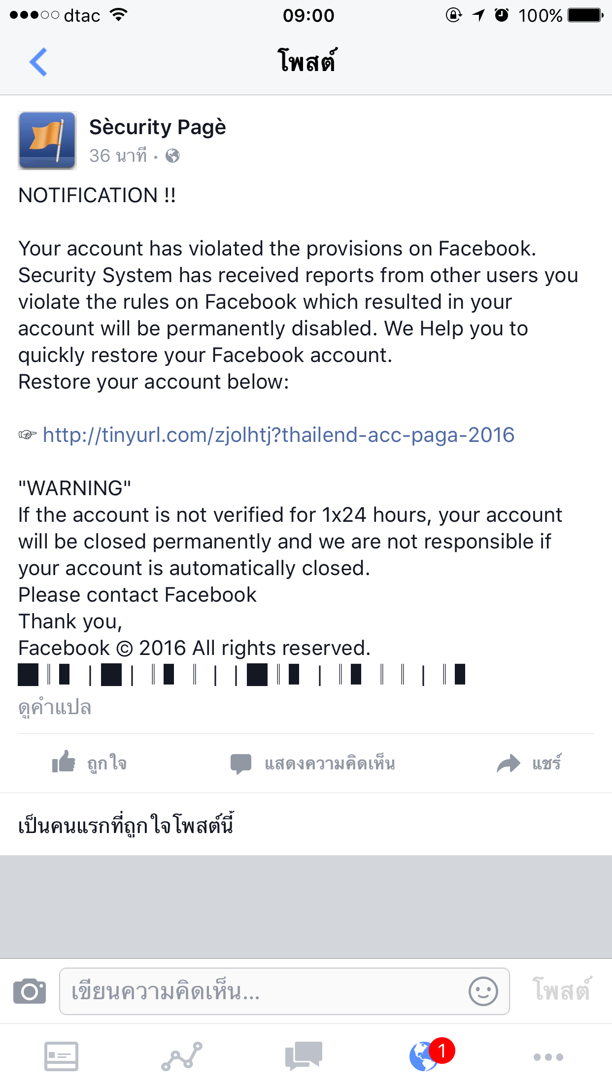 แต่เราไม่ได้กดเข้าลิงค์ต่อไปนะคะ กลัวต้องใส่รหัส เราเลยลบรูปรีวิวนั้นในเพจเราเลย