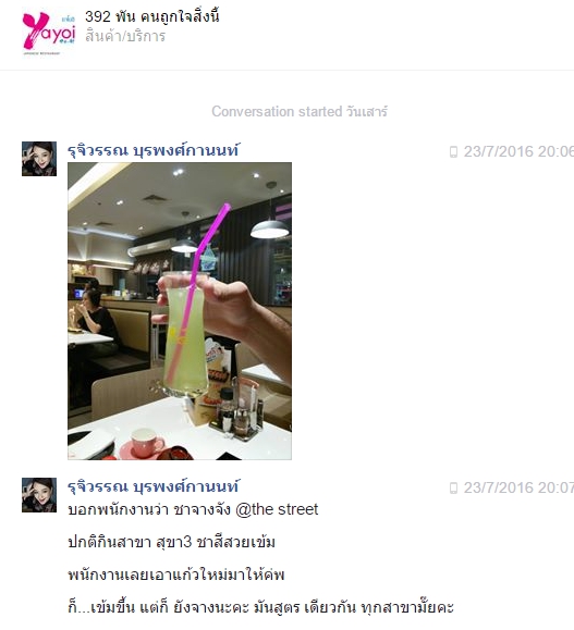 แต่บอกเขาดีๆว่า "น้องคะ พี่สั่งหวานน้อย แล้วนี่ มันจางมากเลยค่ะ" พนักงานเริ่มตื่น "หรอคะ แต่ก็ทำตามสูตรอะค่ะ"