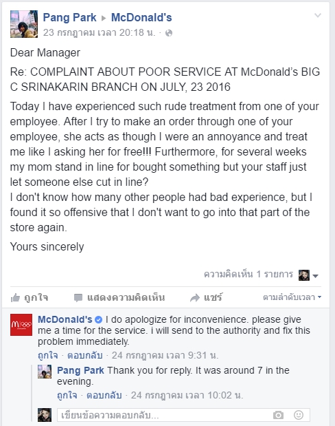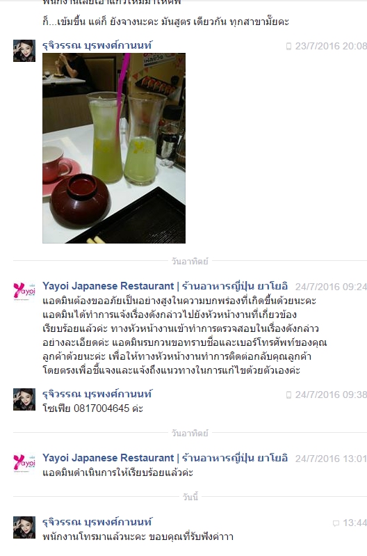 เลย ทักไปที่ Fanpage ของ เขาค่ะ ปรากฎว่า เขาก็ตอบนะคะ พี่โซ ก็ OK แค่ปรับปรุงให้ เราก็ดีใจแล้วค่ะ
