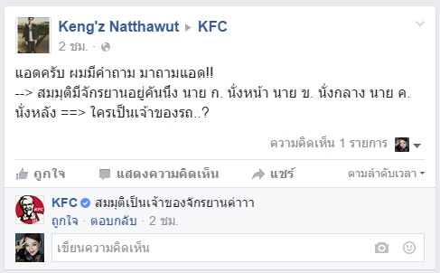 แบรนด์ไก่ KFC ขึ้นชื่อมาก เฮฮา กับลูกค้า ตอบทุกคำถามฉับไว เชื่อว่า หลายท่านคง เคยเข้าไปอ่าน ไปแซว