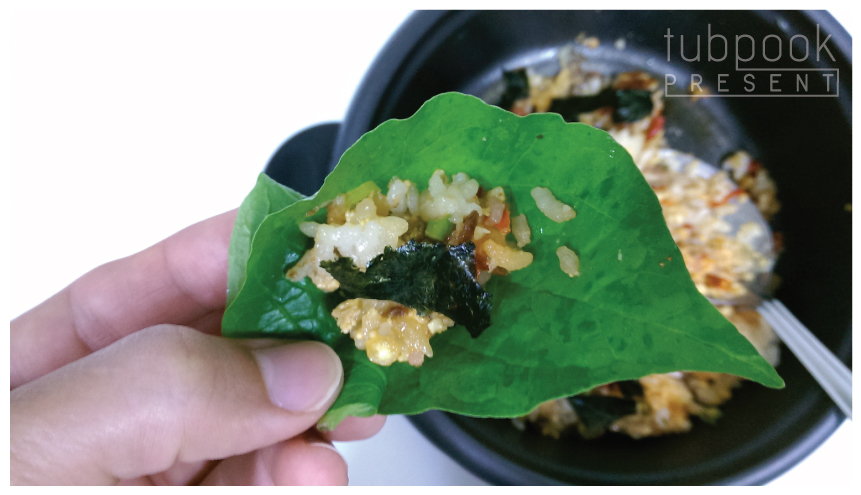 เสร็จเร็ว ก็งี้,,, บ่มิไก๊ จัดการนำใบชะพลู(หรือผักอะไรก็ได้ที่ชอบ) มาห่อทานเป็นเมี่ยงซะเลย อย่าพิลี้พิไลค่ะ ได้เวลาเข้างานแล้ว"""""