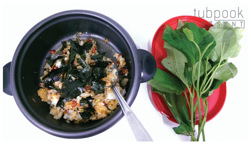 แล้วก็คลุกเคล้าให้เข้ากัน ขยี้เข้าไปค่ะ ,,,,พอค่ะ พอแล้วค่ะ ข้าวเละกันพอดี