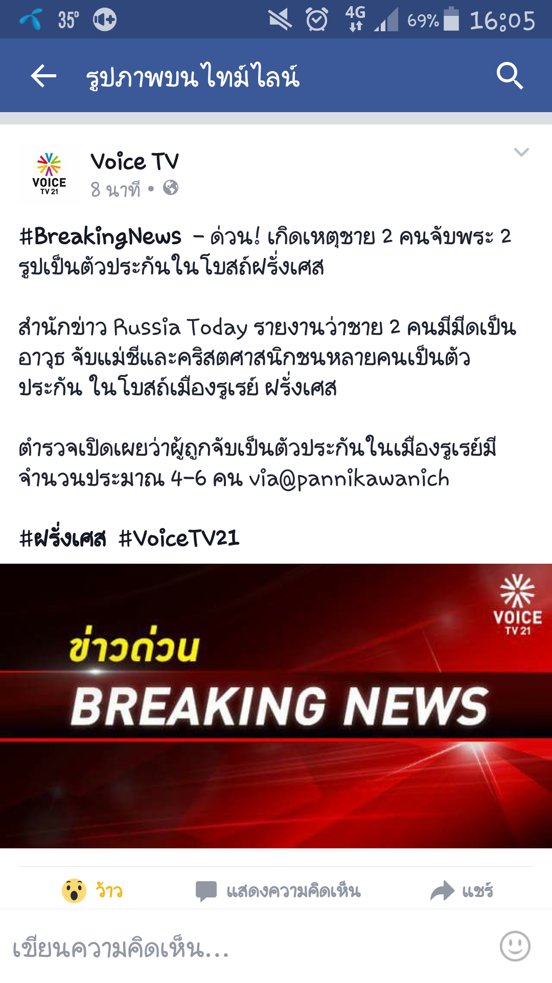 เกิดเหตุบุกจับพระเป็นตัวประกันที่ฝรั่งเศสยังไม่ทราบว่าเป็นยังไงบ้าง