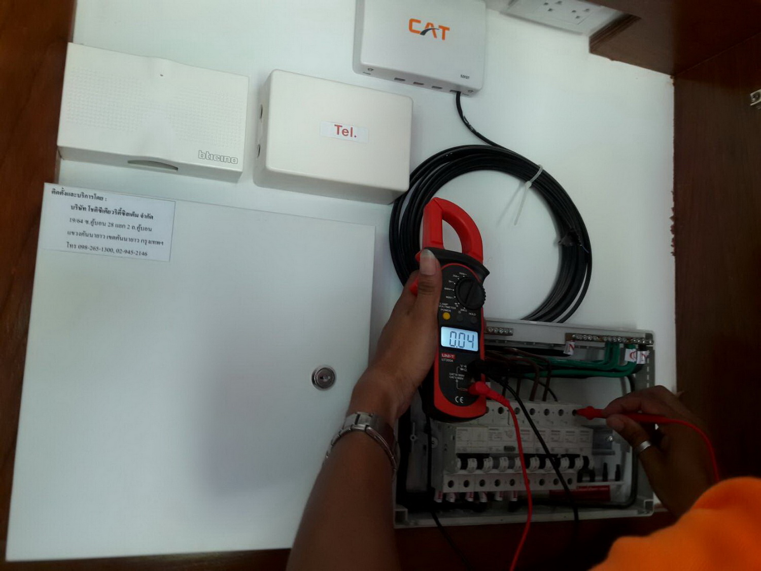 แล้วก็แยกหายกันไปตรวจสายดินในรูเสียบปลั๊ก เห็นเอาเครื่องที่มีไฟมีตัวเลขไปไล่เสียบ