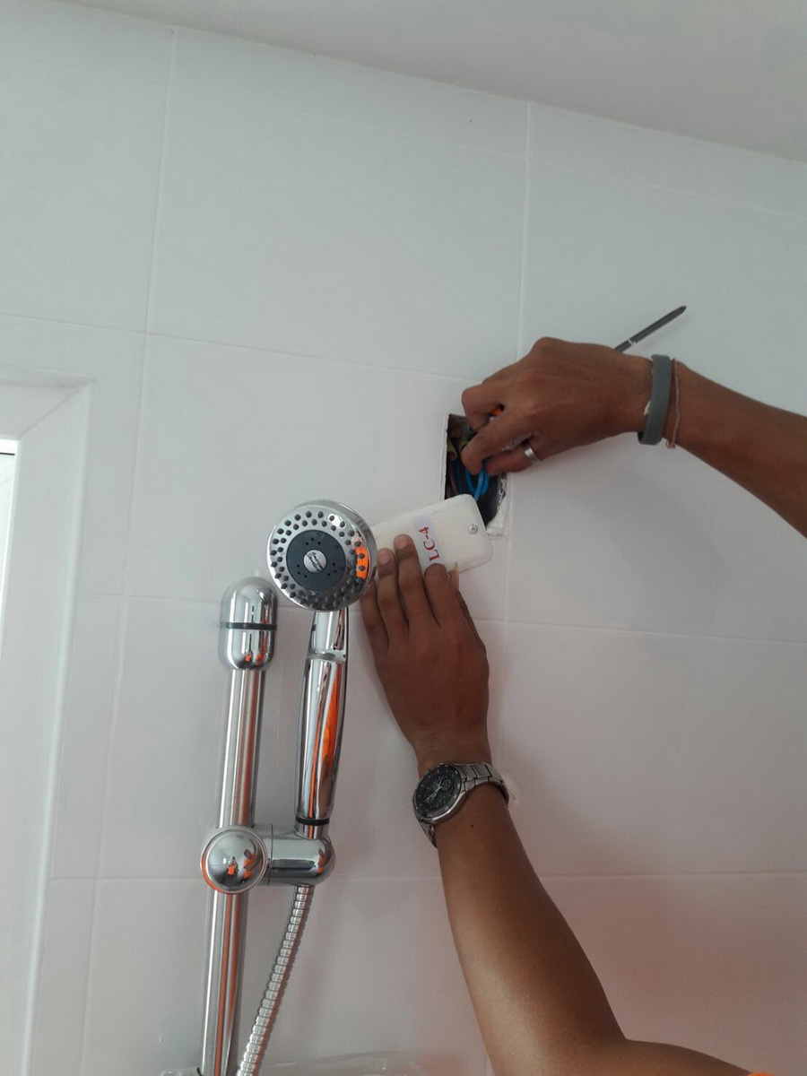 ตามไปสืบชั้น 2 เจออีกคนก็ กะลังเช็คไฟหลังเครื่องทำน้ำอุ่น