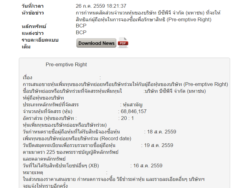 ให้หุ้น BCPG1 หุ้น เมื่อท่านถือ BCP 20 หุ้น ให้น้อยจังน่าจะให้ 1:1