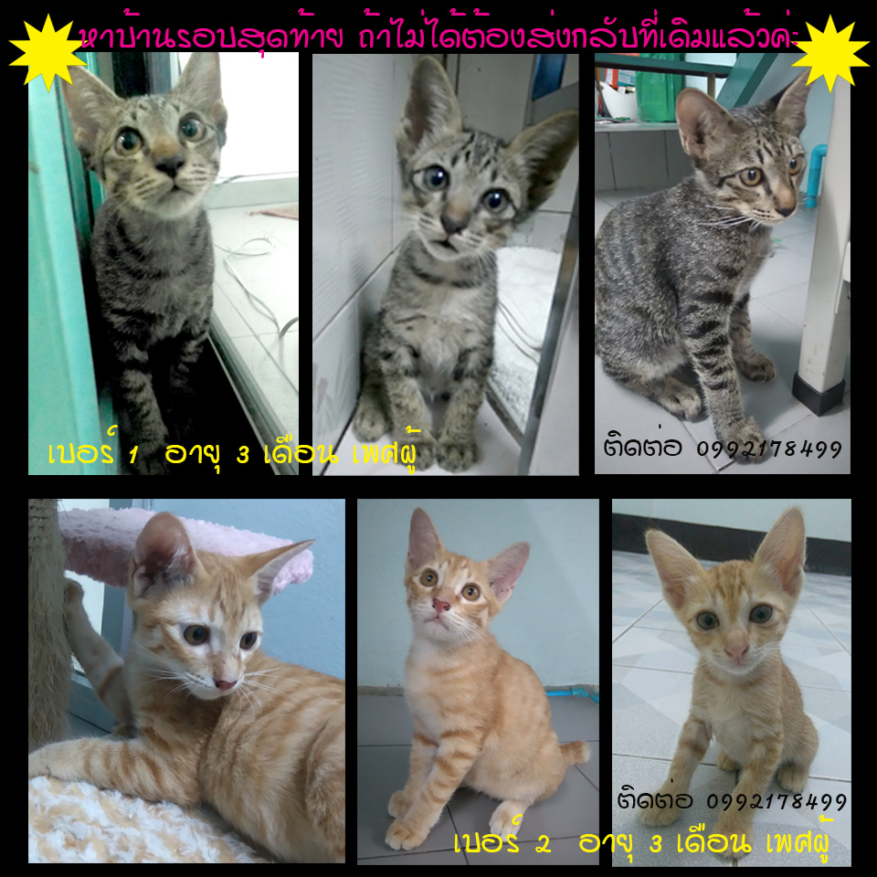 ตอนนี้แมวทั้งสองตัวอยู่ที่พักชั่วคราวใกล้กับซีคอนบางแค แต่จะอยู่ได้ถึงแค่สิ้นเดือนนี้ ตัวพี่ๆอีกสามตัวได้บ้านไปหมดแล้ว
