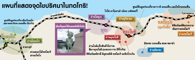 จากการอ่านไกด์บุ๊ต สรุปได้ว่า คำใบ้มีทั้งหมด 4 คำใบ้ โดยสถานมีสถานที่สองแห่ง ที่มีคำใบ้ซ้ำกัน ก็คือ ย่านโกดังเก็บสินค้าโบราณสีขาวคุระโยชิ และ โกโชอาโอยาม่า มังงะ แฟคตอรี่ กล่าวคือ หากไม่สามารถเที่ยวได้ครบ ก็ให้เลือกระหว่างสองแห่งนี้ เพื่อที่จะได้คำใบ้ครบ อย่างไรก็ตาม ห่างต้องการของรางวัลที่ระลึก ก็จะต้องมีแสตมป์ของทั้ง 5 ที่ครบ