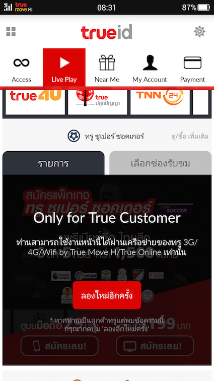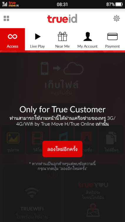 ตอนนี้คือมัน login ได้แต่ 2 tab แรกใช้งานไม่ได้ ขึ้นว่าไม่ได้ใช้ network true ทั้งที่ผมเปิด 4G และใส่ sim truemove-h