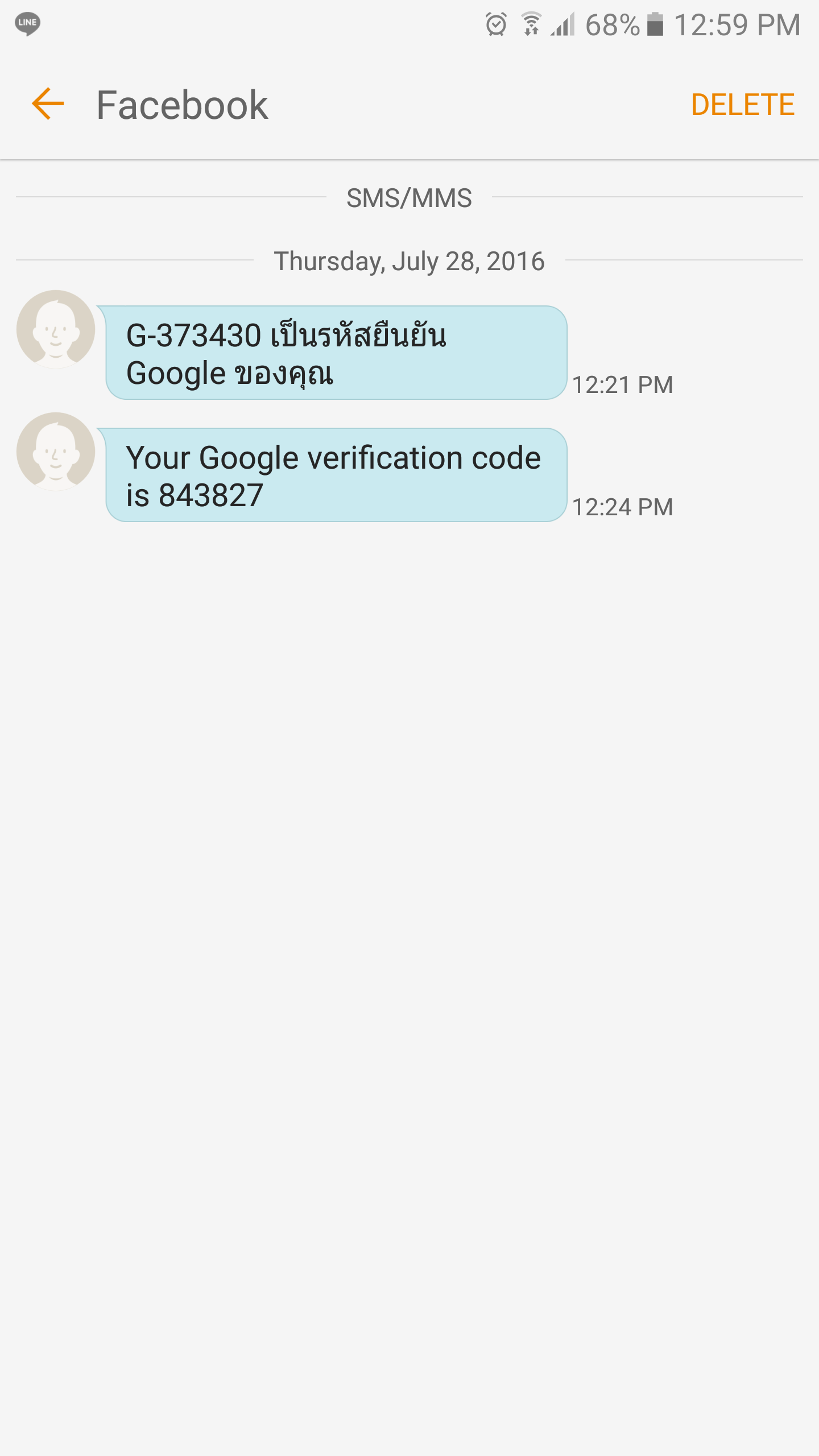 verification code ของ gmail ถูกส่งมาใช่ sms ชื่อ facebook