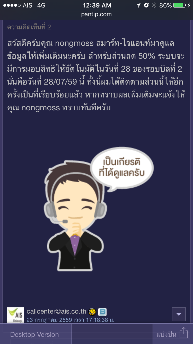 ขออนุญาตตามงาน AIS เรื่องส่วนลดการย้ายค่าย 50%ครับ (รอบบิลที่2แล้ว)