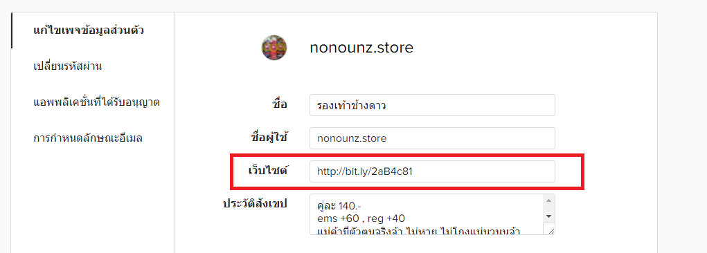 ในช่อง "เว็บไซต์" ย้ำว่าช่องเว็บไซต์นะคะ เพราะถ้าวางในช่อง bio ปกติมันจะไม่ขึ้นเป็นลิ้งค์ค่ะ