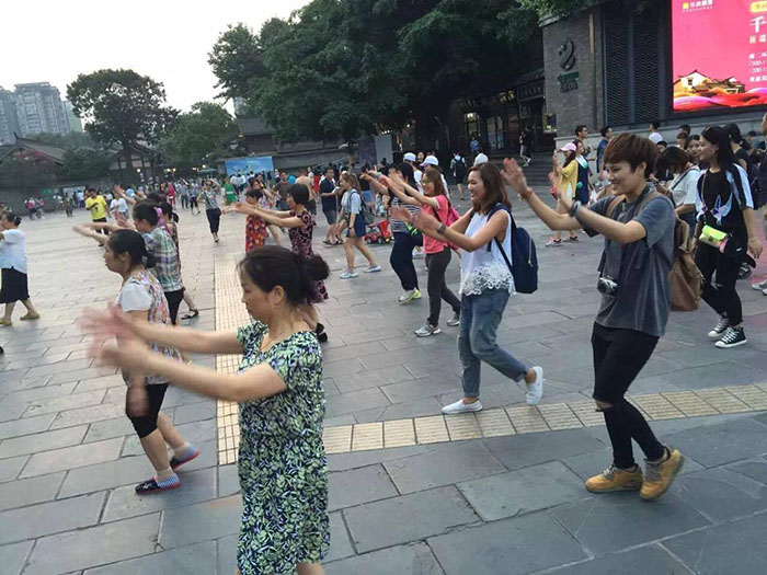 ระหว่างทางจะไป Kuanxiangzi เรา 4 คนและเพ่ยเพ่ย เดินผ่านเจอผู้สูงอายุกำลังออกกำลังกาย เพ่ยเพ่ยก็บอกลองไปเต้นตามเค้าสิ มีรึจะเหลือ กินอิ่มมาเต็มที่ก็ต้องหาวิธีย่อยซักหน่อย เรา 4 คนเลยจัดการไปเข้าแถวต่อหลังคนอื่นที่ออกกำลังกายอยู่ ท่าไม่ยากเลยค่า เหมาะแก่ผู้สูงวัยจริงๆ แถมยังมีนักท่องเที่ยวที่มาเที่ยวเหมือนกันมาต่อแถวข้างหลังอีก สนุกดีค่ะ ขยับร่างกายซักพักก็เดินไปที่ตรอกกันต่อค่ะ