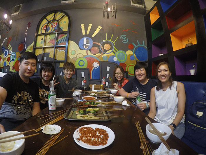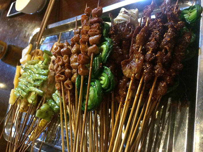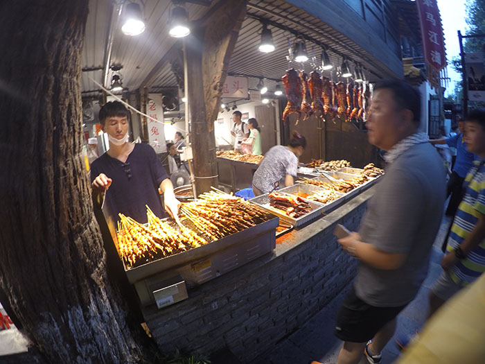 เดินชมบรรยากาศยามค่ำคืนในตรอกคนเดินเสร็จ เพ่ยเพ่ยก็พาไปจัดหนักมื้อดึกแล้วล่ะค่ะ มื้อนี้คือ 烧烤 (shaokao) นั่นก็คือ บาร์บิคิวนั่นเองค่ะ