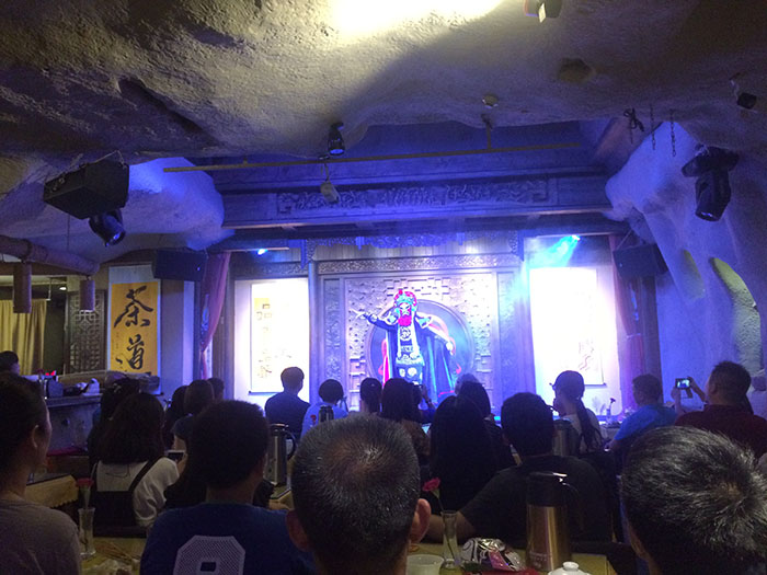 อาจุมม่าทั้ง 2 รีเควสอยากจะดูงิ้วเปลี่ยนหน้ากาก เพ่ยเพ่ยเลยพาไปนั่งดูในร้านเลย จิบน้ำชาไปด้วย ดูการแสดงไปด้วย ร้านนี้เค้ามีการแสดงหลายอย่างนะคะ เช่น หญิงสาวมาร้องเพลงให้ฟัง การเทน้ำชาจากกาปากยาว การลงโทษเด็กสมัยก่อนของชาวเสฉวน เป็นต้น น่าตื่นตาตื่นใจไปอีกแบบค่ะ