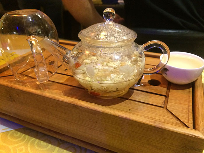 ระหว่างชมการแสดงก็จิบชาหอมมะลิไปด้วยค่ะ ชาเค้าหอมดีนะคะ