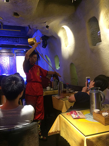 นักแสดงลงมาโชว์เทน้ำชาถึงข้างล่างเลยค่ะ