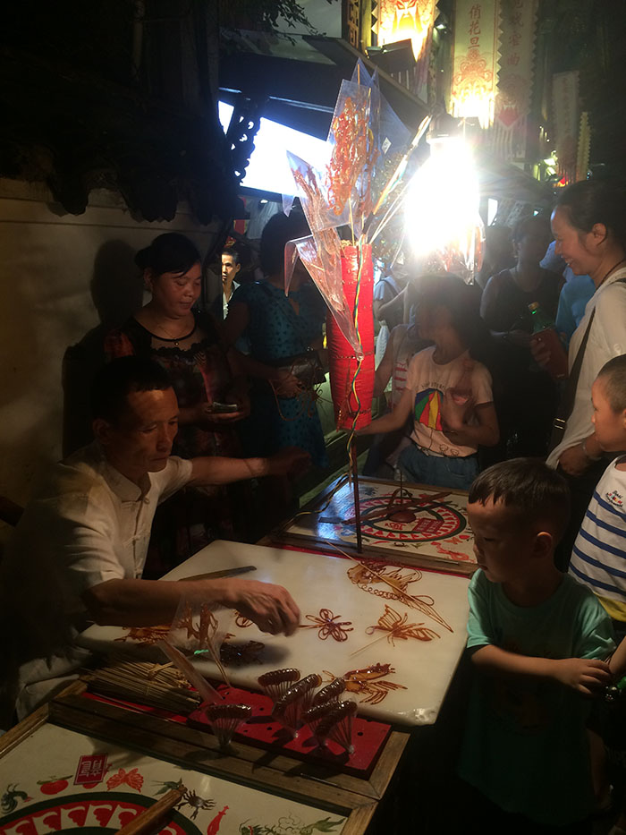 อันนี้เหมือนน้ำตาลปั้นบ้านเราค่ะ คิวยาวมากๆ น้ำตาลปั้นที่นี่มีให้เป่าลมเข้าไปในตัวน้ำตาลได้ด้วยนะคะ จะได้ดูตัวพองๆ