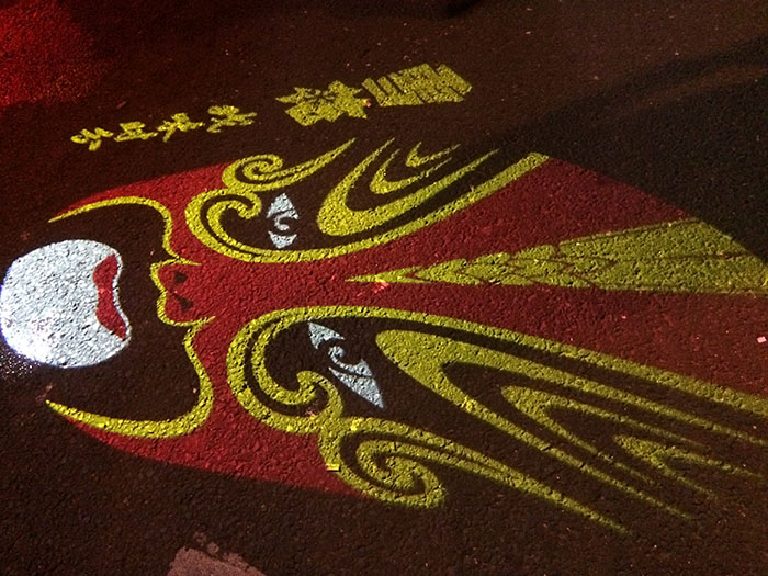 นอกจากนี้ยังมีการฉายรูปหน้ากากบนถนนเป็นสีสันอีกอย่างนึงของที่นี่เลยค่ะ