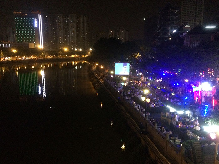 ยังไม่จบค่ะ ราตรีนี้อีกยาวไกล กินเสร็จประมาณ เกือบ 5 ทุ่ม ไปเดินเล่นกันต่อที่ถนนเลียบแม่น้ำ ชื่อถนนหลานกุ้ยฟาง ถนนเส้นนี้จะมีผับบาร์ตลอดทั้งเส้นเลยค่า ควันบุหรี่เยอะไปหน่อยค่ะ (สำหรับคนที่ไม่ชอบกลิ่นควันบุหรี่แนะนำให้พก mask ไปด้วยค่ะ)