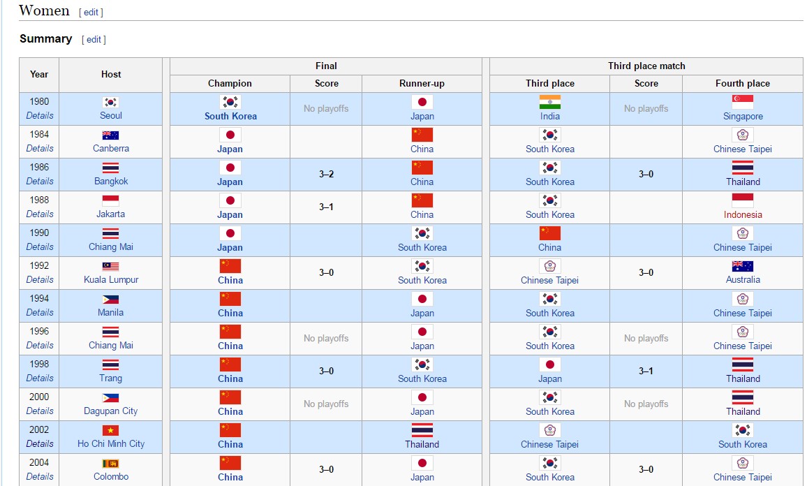 ที่มา https://en.wikipedia.org/wiki/Asian_Junior_Volleyball_Championship#Women