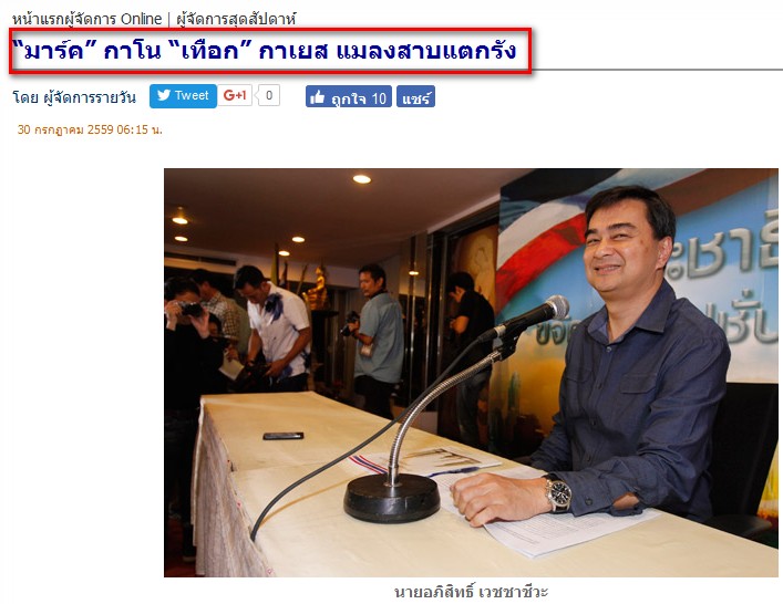 “มาร์ค”กาโน “เทือก” กาเยส แมลงสาบแตกรัง..เห็น ผจก.พาดหัวข่าวอย่างนี้แร้ว แสนสมเพช เอ๊ย แสนสงสารสาวก ปชป.เสียจริงเสียจัง
