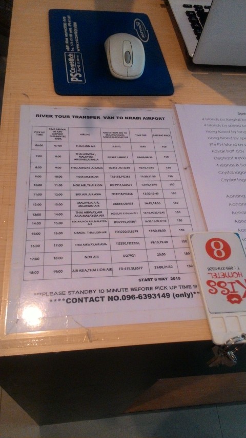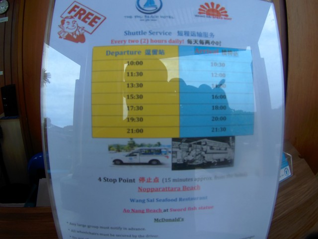 ตารางกำหนดเวลาไปส่ง อ่าวนาง ครับ ^^ ไป และ กลับ โดย โรงแรม