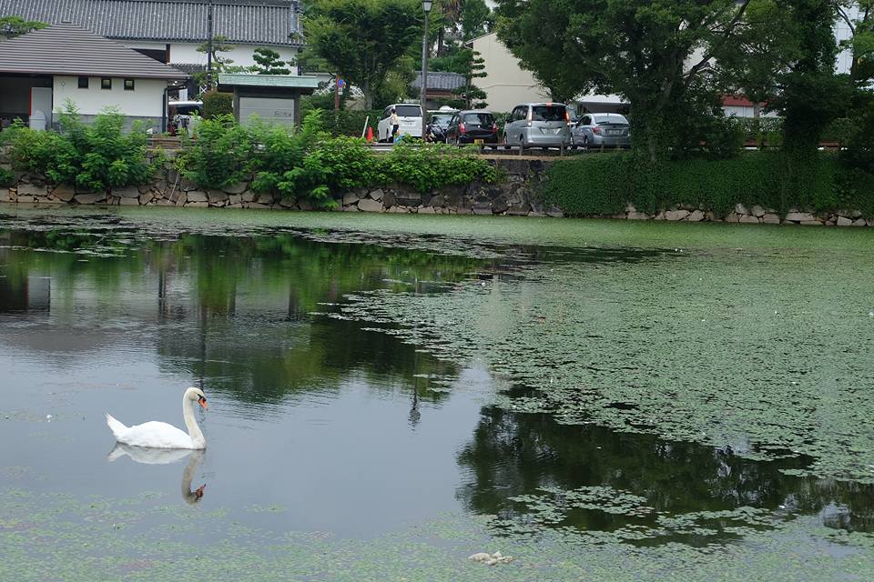 ทางเข้ามีหลายทางนะครับ ตัวผมลงอีกสถานีนึง เลยเดินเข้าทางด้านหลัง จะมีบ่อน้ำล้อมรอบปราสาทขนาดใหญ่ เเละจะมีห่าน อยู่ 2 ตัว