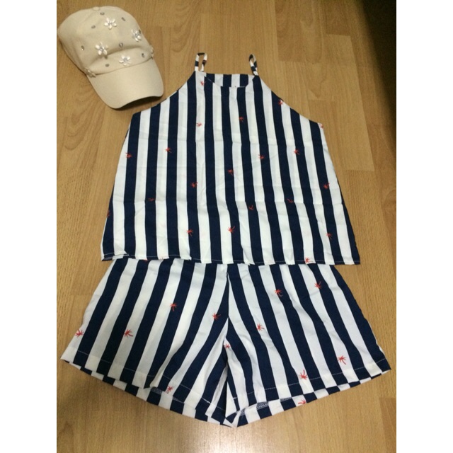 เซ็ท สายเดี่ยว+ กางเกง สีกรม ลายทาง