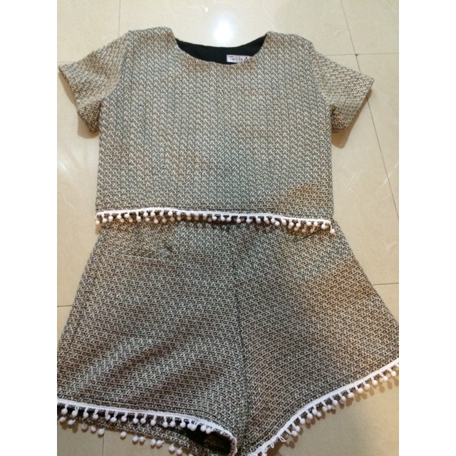 ชุดเซ็ทเสื้อครอป + กางเกง ชายระบาย