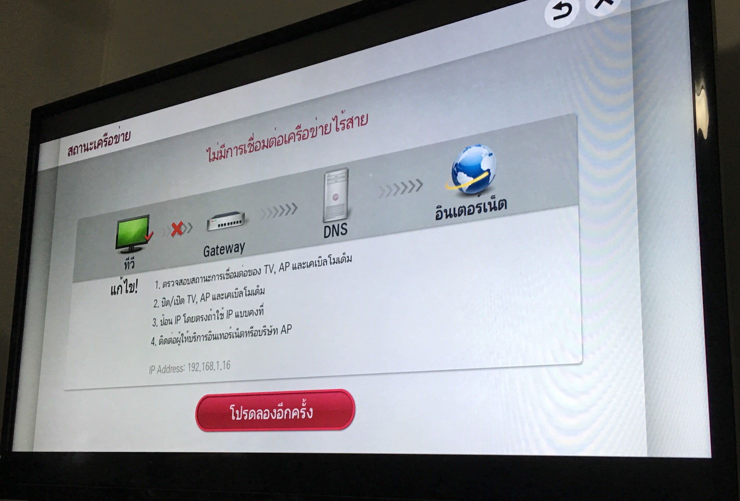 แล้ว Smart Tv พอต่อเน็ต ก็จะหลุด ตลอดๆๆ ไม่เหมือนตอนใช้ ทรู เลย ไม่รู้ต้องแก้ยังไง เพราะตั้งไม่เป็นค่ะ เกี่ยวกับ Ip มันซ้ำกันหรอคะ ทำไงดี เอ่ย ขึ้นแบบในรูปตลอดเลย ค่ะ