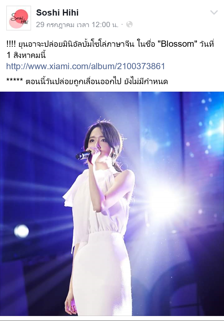 ยุนอา snsd จะปล่อยมินิอัลบั้มภาษาจีน ในวันที่ 31 กรกฎาคม 2559 ในรูปแบบดิจิตอลอัลบั้มผ่าน alibaba planet ปล.จะไม่มียุนอา 3 วิอีกต่อไป