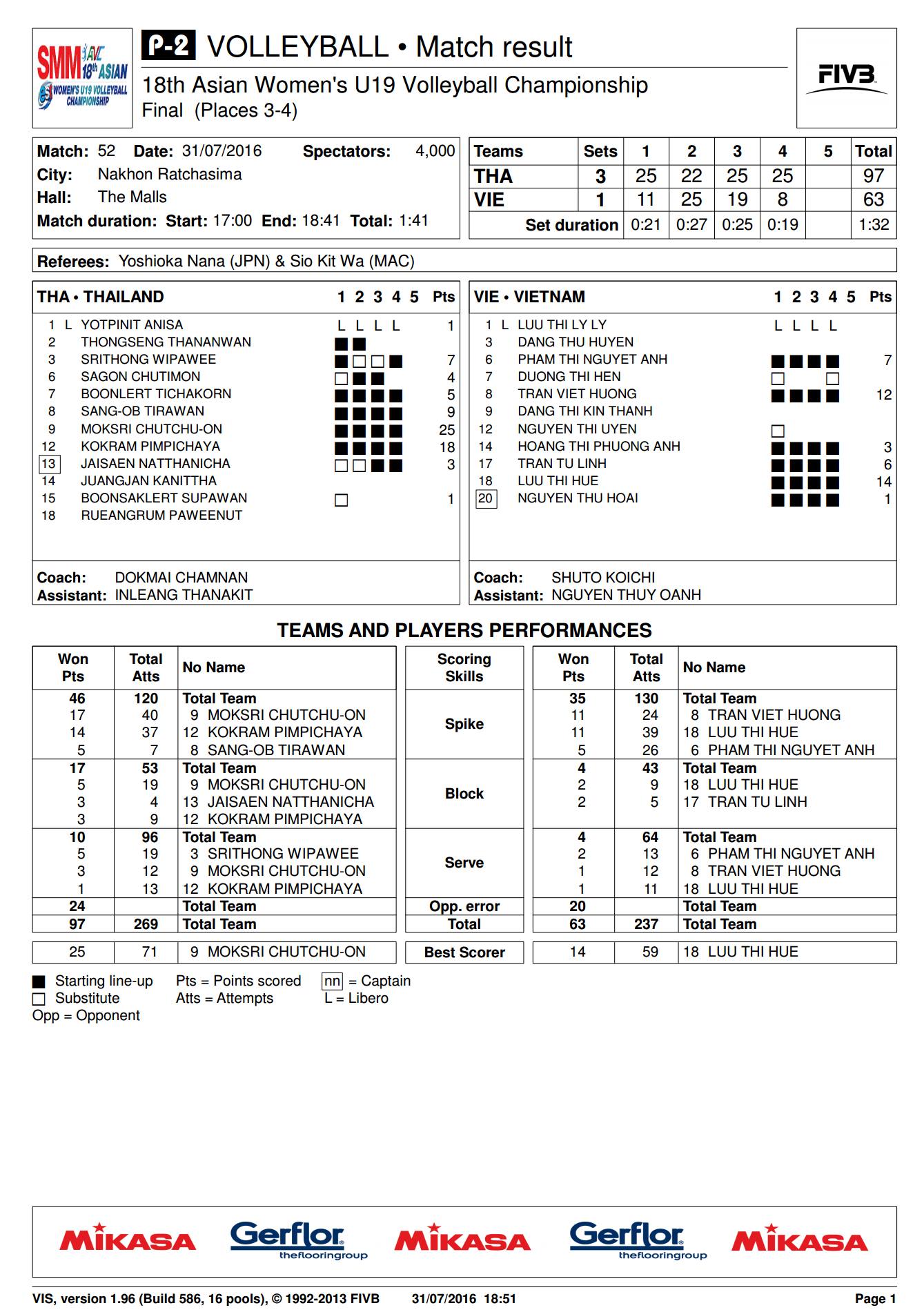 สถิติวอลเลย์บอลชาย ::: ฉบับจากเว็บไซต์เอเชี่ยนเกมส์ ::: ไทย VS เวียดนาม