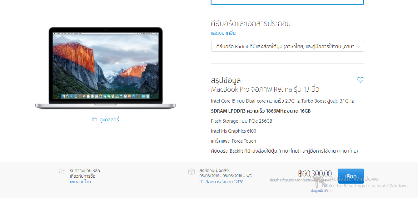 Intel Iris Graphics 6100(สั่งจากApple online storeTH)