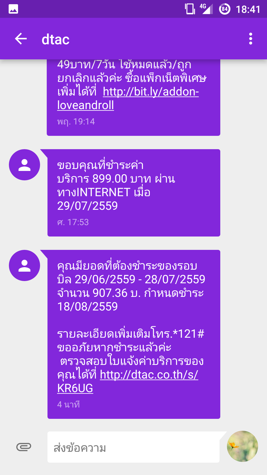 รบกวน Dtac ด้วยครับ ข้อความสั้นเชิญชวนให้ต่ออายุซิมเติมเงิน