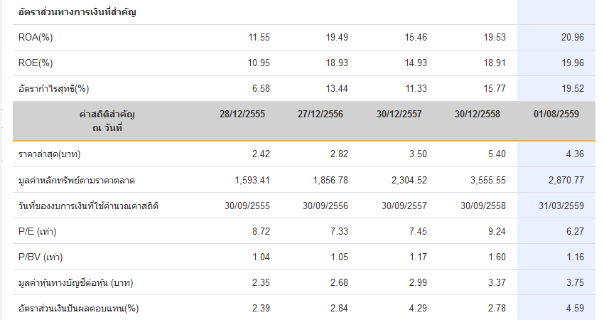 ดูมานานหาจังหวะเข้าก็ได้เข้าแล้วตอนนี้ละครับ งบดี ราคาขึ้นตามกำไร ภายใน3ปีล่าสุดราคาและบุคเพิ่มเกือบ60% หรือปีละเกือบ20% (ทำมาหากินได้ ไม่ได้ขายผัน) เป็นหุ้นไม่หวือหวาด้านข่าว เหมาะถือยาว กำไรโต บุคโตตลอด PE ถูกที่สุดในตลาดแบบไม่มีกำไรพิเศษ แต่ระหว่างทางก็ต้องมีข่าวดีข่าวร้ายบ้าง แวะพักบ้าง เพราะถ้าไม่ลงมาก็ไม่ได้ชื้อ แต่ผมว่าเจ้าใจเย็น อยากได้ของถูกแล้วถูกอีก ทั้งที่เจ้าเก็บมาหลายเดือนต้นทุนเจ้าน่าจะ5+บาท มองในแง่ดีว่าเจ้าคงอยากได้ของเยอะๆๆกลัวขึ้นไปสู้แรงเม่าขายไม่ได้ ใจหนึ่งผมก็ยากให้ไป4บาท จะได้หาทางเข้าเพิ่ม ก็ลองดูครับ ขอให้ทุกท่านโชคดี