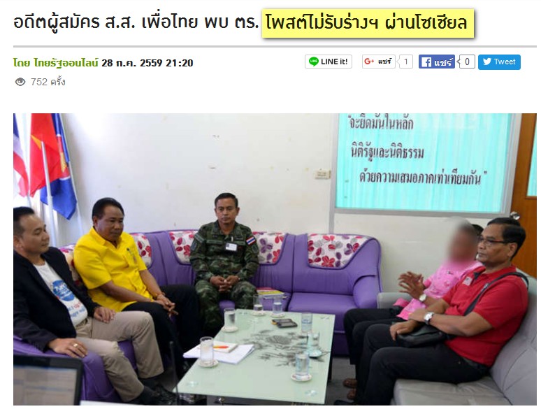 อดีตผู้สมัคร ส.ส.เพื่อไทยพบ ตร.โพสต์ไม่รับร่างฯผ่านโซเชียล...อ้าวไหงเป็นงั้นล่ะ แล้วสุเมือกโจ่งแจ้งปานนั้นไม่เห็นหรือคับ