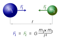 ซึ่งแปรผันตามมวลและแปรผกผันตามระยะห่างยกกำลัง2 ของวัตถุนั้นๆ